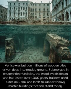 The system was so effective that buildings like St. Mark’s Basilica and the Doge’s Palace still stand today on their original wooden foundations.